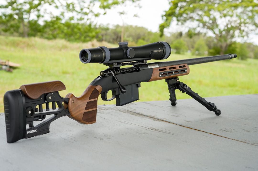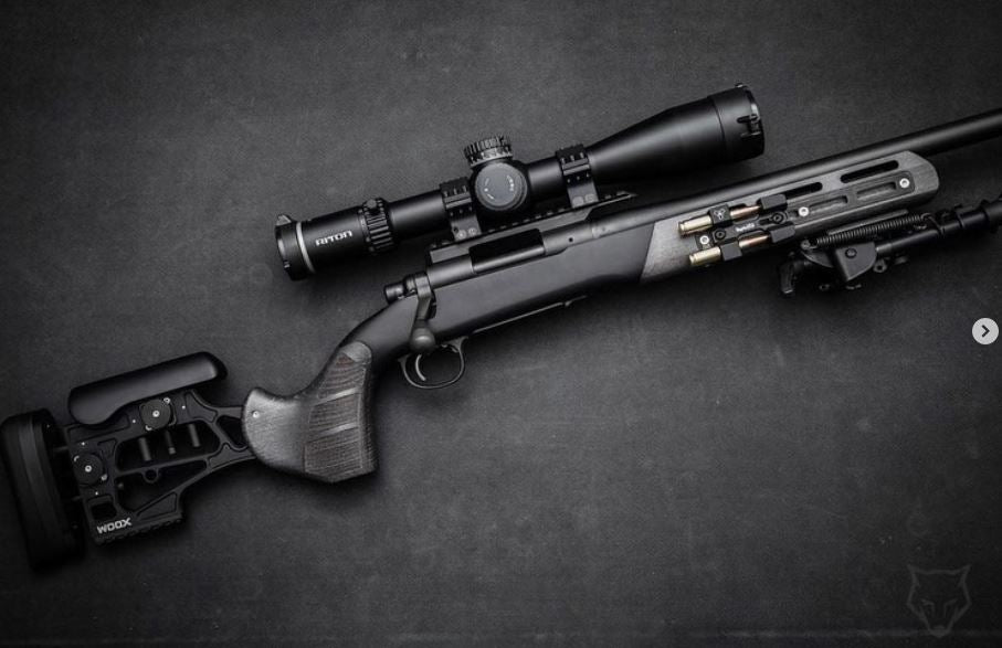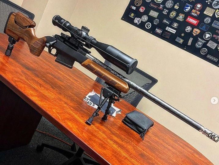 With the Woox Merica Chassis, Summit Precision Matte Black Carbon Fiber Barrel, Magpul Bipod, Innovative Arms Apex Suppressor, Leupold Mark 4 Scope and Rings, and Tactical Solutions Magazine Release, this custom rifle stands in a league of its own.