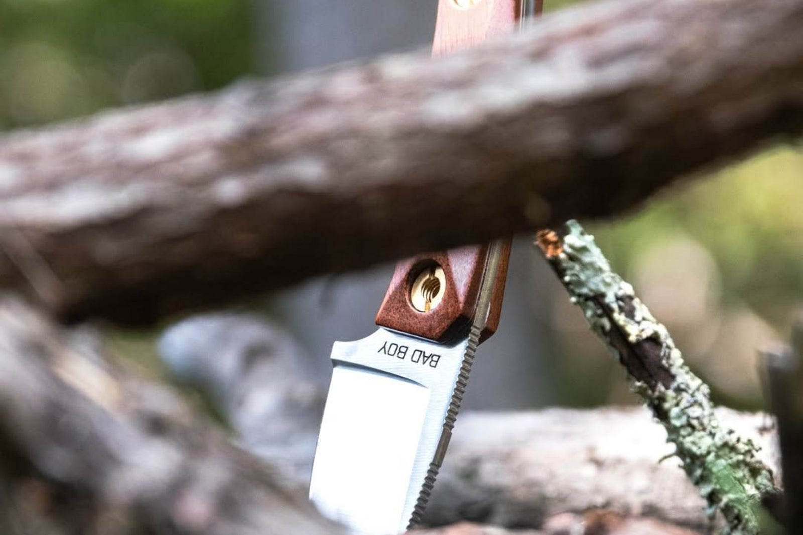 WOOX created the Bad Boy as a premium EDC essential carry knife. This compact fixed blade with an American Walnut handle and D2 steel blade includes an Italian leather sheath.The best knife is the one you have with you and the Bad Boy is destined to be on your belt for a lifetime.