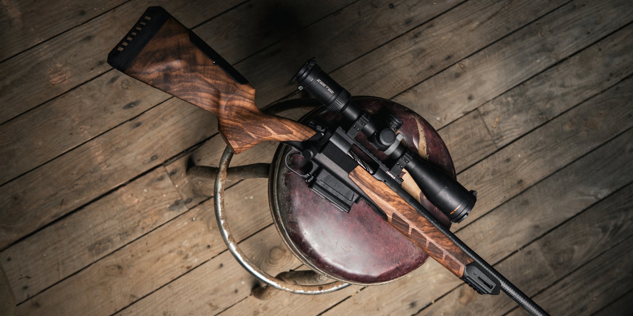 The Superleggera, translating to "Super Light," revolutionizes the standard for lightweight performance, tipping the scales at 35 oz. It harmoniously integrates the timeless beauty of American walnut with the robustness of modern, carbon-reinforced SLS material. The V-Block Bedding Mini Chassis fortifies this union, promising durability and precision. SuperLeggera has been tested .278 MOA improving more than .3 MOA the factory stock accuracy.