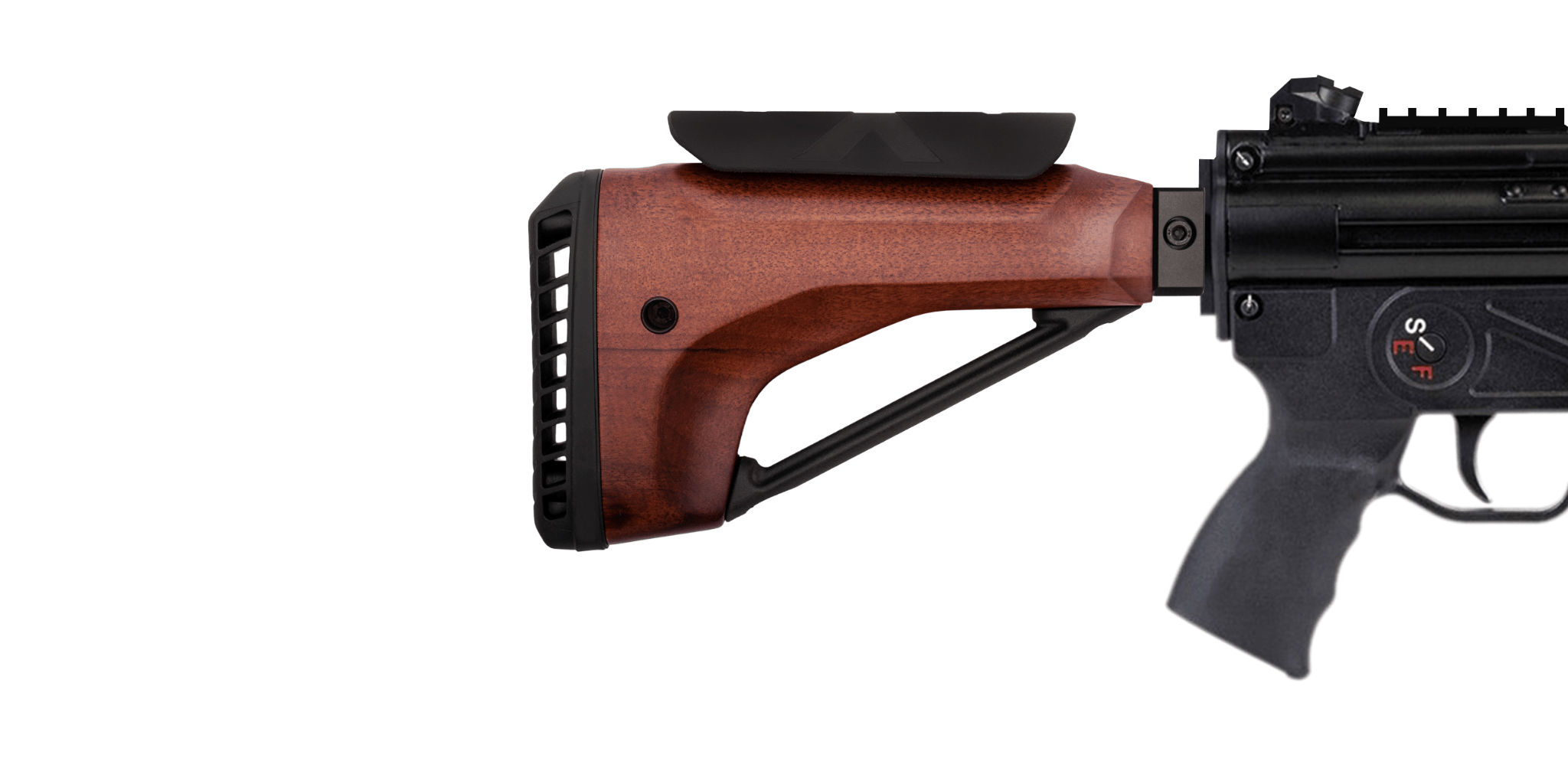 The WOODY STOCK is hand-finished from select American walnut, chosen for rich color and beautiful grain.